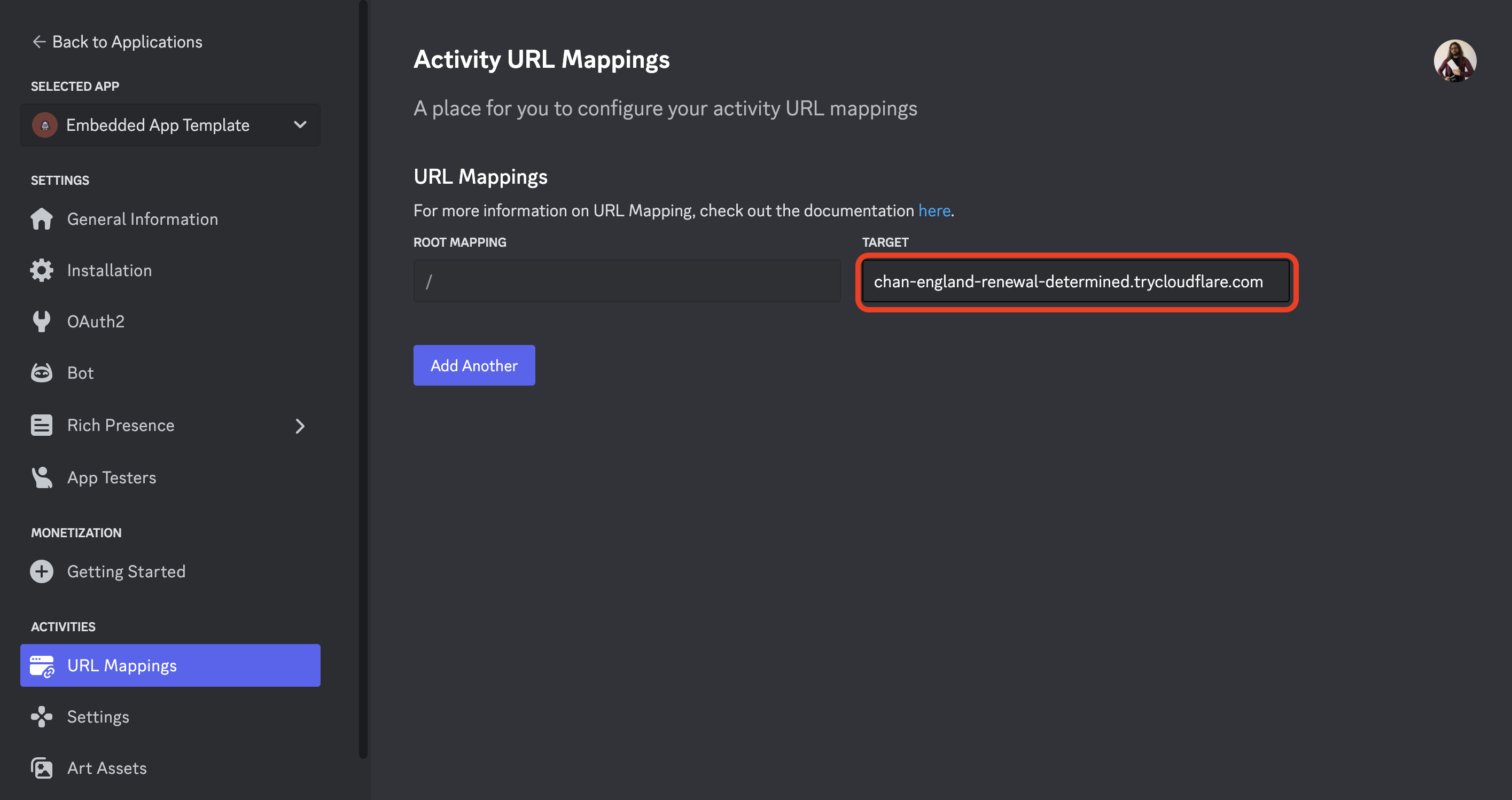 You will need to configure your Discord Activity’s URLs: